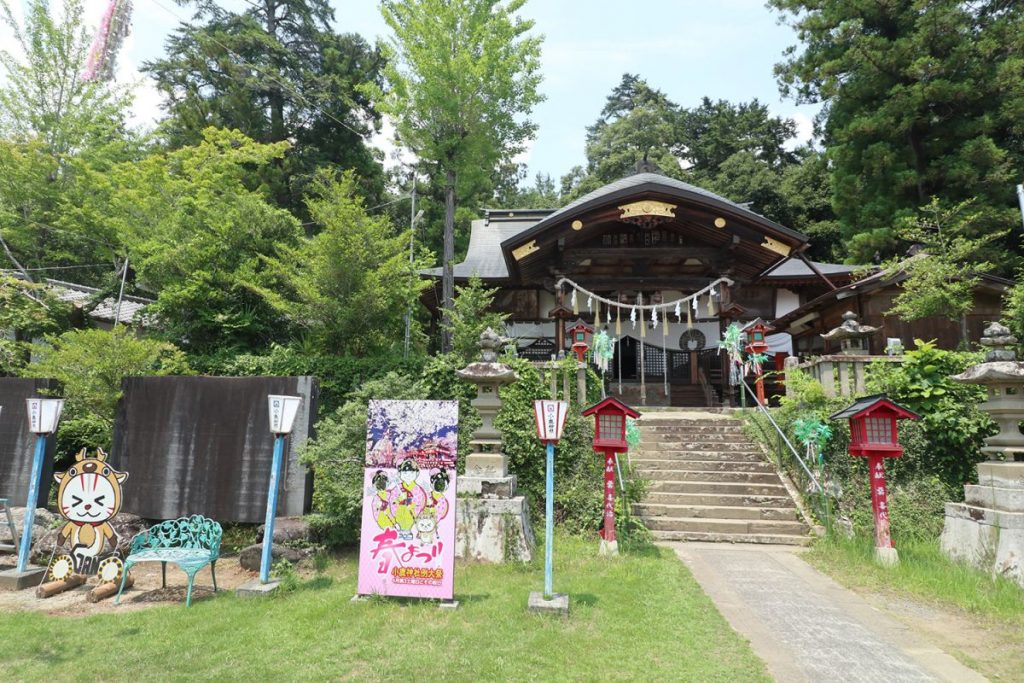 小鹿野町を横断する国道299号を走ると、高さ15mはあろうかという巨大な鳥居が目に飛び込んできます。その鳥居をくぐった先にあるのが、元祖バイク神社として知られる「小鹿神社」です。その昔、東京モーターサイクルショーのメインステージで安全祈願をしたことがキッカケとなり、多くのライダーからバイク神社として親しまれるようになりました。こちらではバイク用交通安全シールやお守りを手に入れられます。