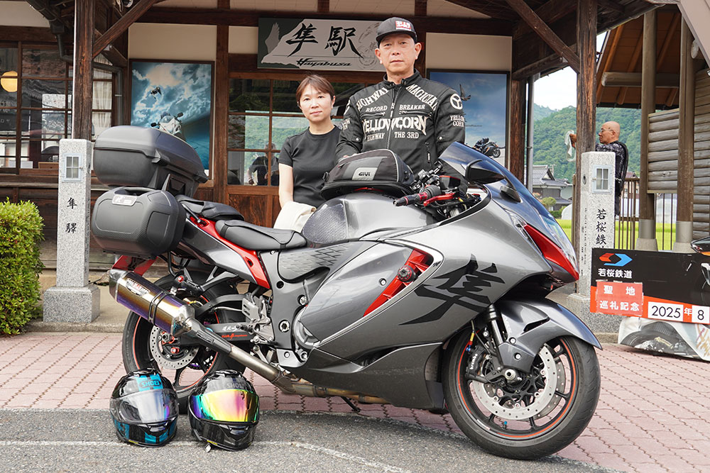 「札幌からタンデムで来ました。『隼駅まつり』にはいつも参加しています。以前はHayabusa 2型に乗っていたのですが、『隼駅まつり』で3型を見ているうちに惹かれてしまい、約3万km走った2型から今年乗り換えました。