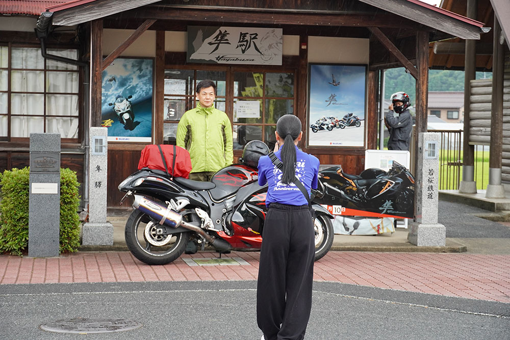 「『Hayabusa乗りの皆さん、おかえりなさい!』と言って、毎年お出迎えさせていただいています。『隼駅まつり』が始まった頃は、たくさんのバイクが集まることに驚く地元住民もいましたが、来場者は皆マナーが良く、ライダーへの好印象が高まるとともに、今では『隼駅まつり』やライダーを迎える取り組みを応援してもらっています。