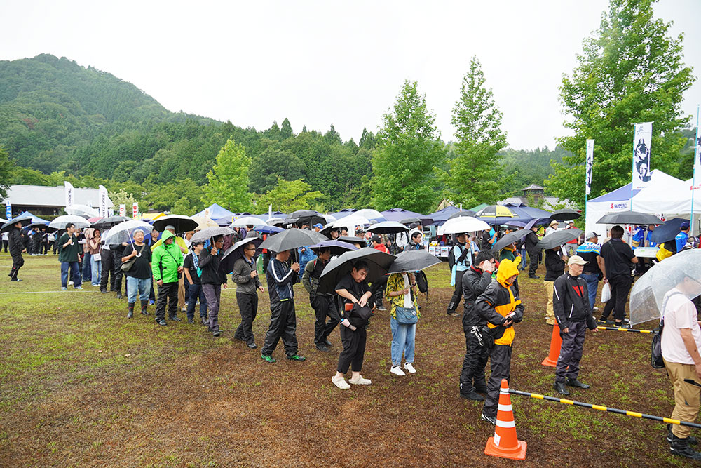 今年の「第15回 隼駅まつり」は8月10日、船岡竹林公園(鳥取県八頭郡)を会場として開催されました。「隼駅まつり」が始まって以来、初となる雨中での開催となりましたが、それでも全国各地から大勢のバイクがやってきました。旅慣れているベテランライダーからは「毎年暑くて大変だけど、今日は涼しくて快適!」との声も聞けるなど、悪天候すら楽しみに変えてしまう明るさが魅力的でした。