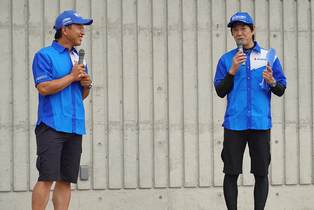 続いて行われたトークショーには、世界耐久選手権で2005年、2006年とチャンピオンに輝いた元ロードレースライダーの北川 圭一氏(以下、北川氏)と、「チームスズキCNチャレンジ」の一員として「2025 FIM世界耐久選手権 “コカ・コーラ”鈴鹿8時間耐久ロードレース 第46回大会」(以下、鈴鹿8耐)に挑んだロードレースライダー津田 拓也選手(津田選手)が登場。