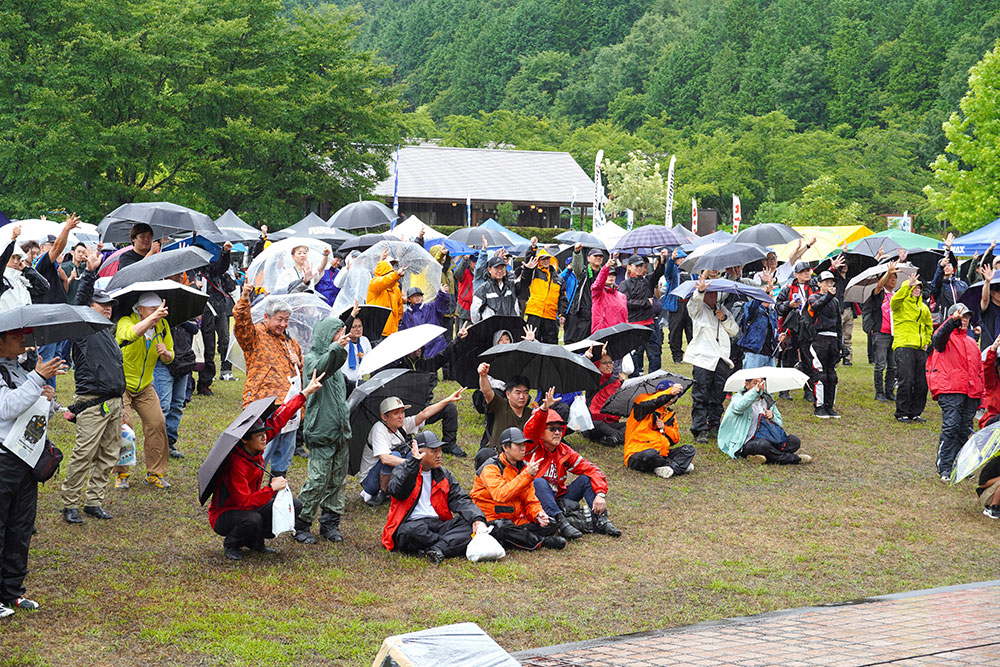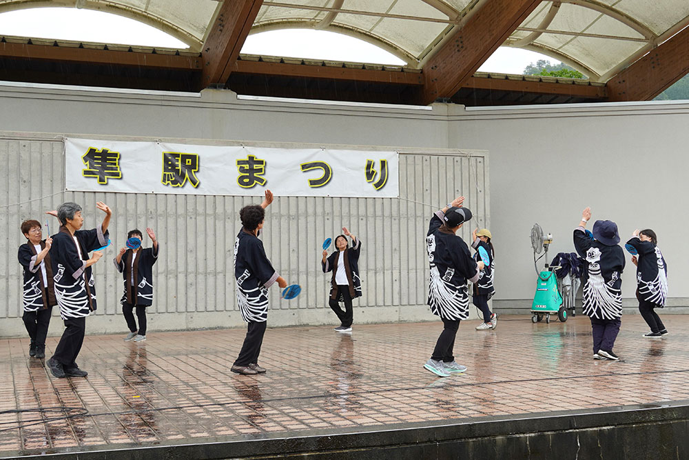会場では、地元の婦人会「隼OND」による隼音頭の披露、「遠くから来たで賞」や「私が一番元気だぞ賞(最高齢賞)」などが贈られたライダー交流会、大抽選会、じゃんけん大会などが催されました。あいにくの雨模様ではありましたが、会場は終始にぎやかでした。