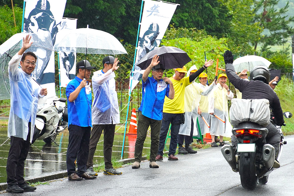 地元有志に加え各地からのボランティアと八頭町、そしてHayabusaを世に生み出したスズキ、さらに全国から集うHayabusaオーナーが力を合わせて育ててきた「隼駅まつり」。雨の中でも沿道から手を振ってくれる地域の人々の温かさが、このイベントを支えています。単一モデルのイベントとしては国内でも稀に見る来場者数を誇り、ここには“Hayabusaだからこそ”実現できた一体感があります。メーカーの情熱、そしてオーナーの深い“Hayabusa愛”が結集して育まれたこの祭典は、バイクイベントの枠を超え、末長くバイクライフを楽しむための“コトづくり”としての可能性を示す好例と言えます。