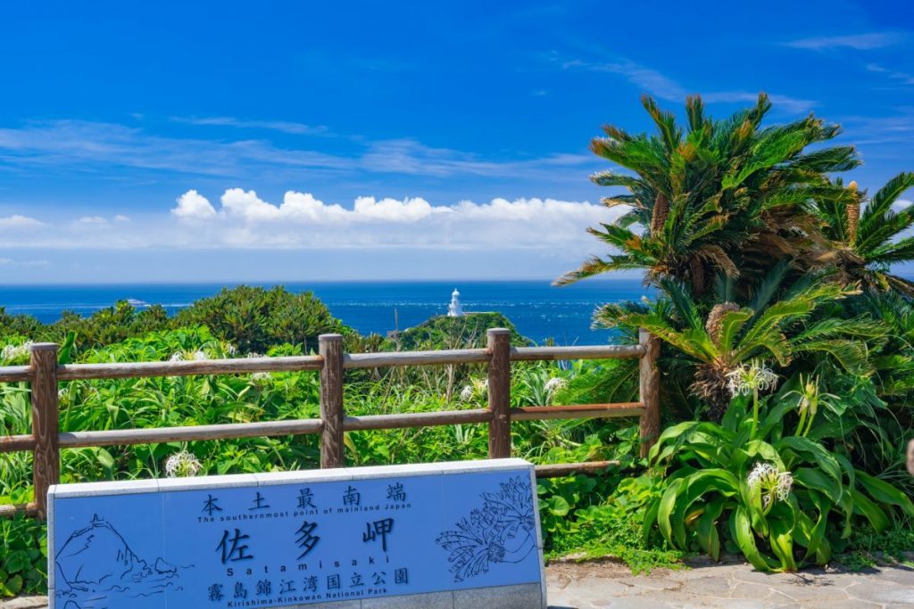 桜島、霧島神宮、開聞岳(かいもんだけ)などの鹿児島の名所を指定地域とする自然公園「霧島錦江湾(きりしまきんこうわん)国立公園」に含まれる日本本土最南端の地「佐多岬」。晴れた日には展望台から広大な太平洋や鹿児島湾、開聞岳、屋久島、種子島を一望できます。