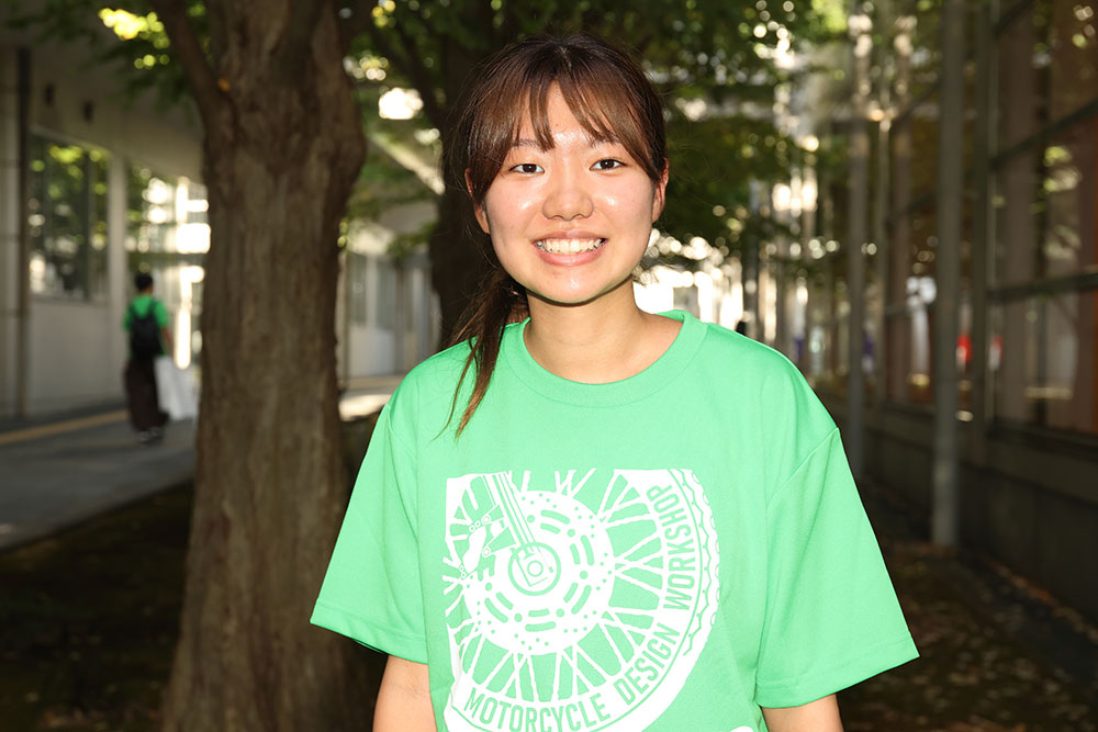 「もともとモビリティが好きで、四輪デザイナー志望だったのですが、今年からバイクに乗り始めて、すっかりバイクの魅力に惹かれました。大学の先生にこの講座を紹介していただき『絶対参加しなきゃ!』と思いました。