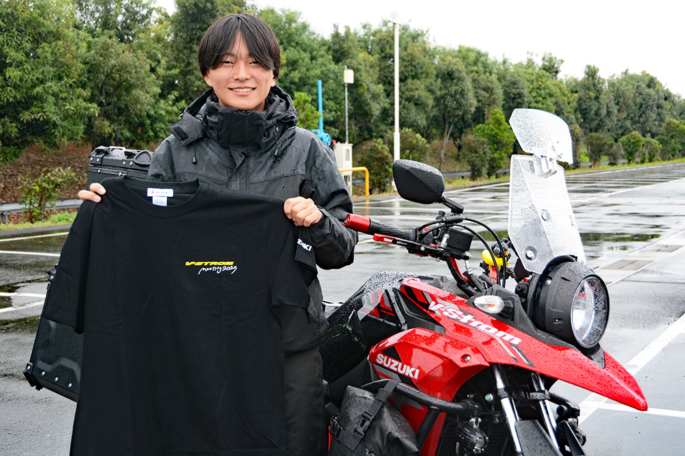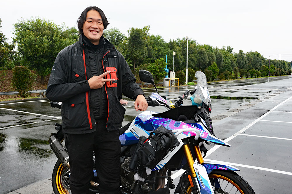 「Vストローム250に初めて乗ったときに『コレだ!』と思い、手に入れてからずっと乗り続けている大好きなモデルです。個人的にも楽しみにしていたイベントなので、今日は皆さんと一緒に満喫できればと思います」