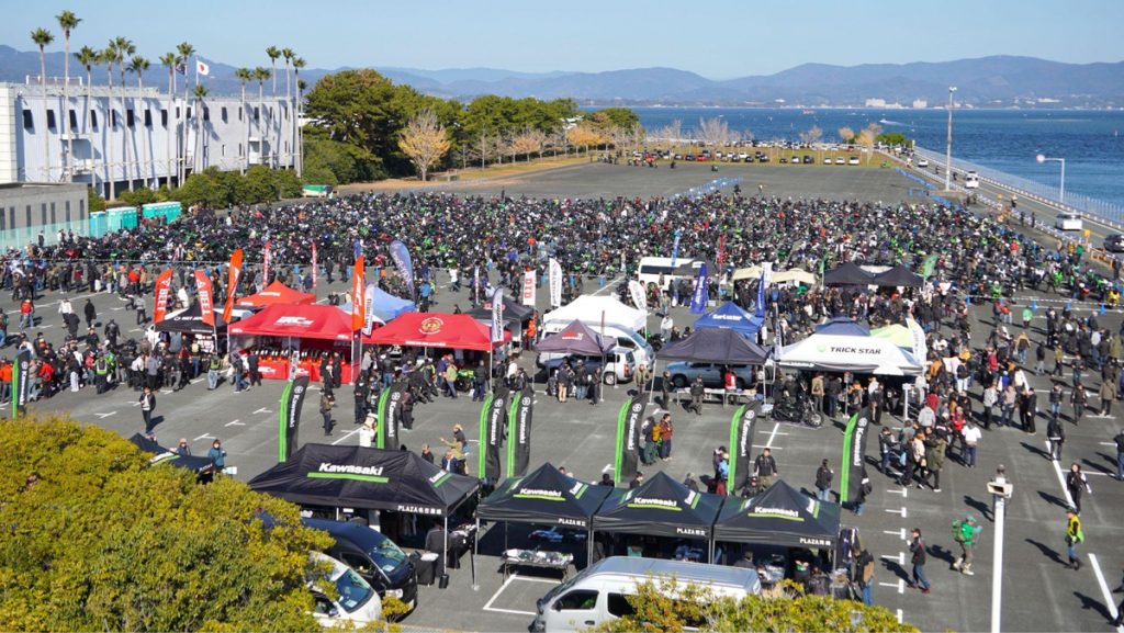 今年は3月に徳島県の「沖洲マリンターミナル」、6月に岩手県の「夏油高原スキー場」、10月に新潟県の「かぐらスキー場みつまたステーション」、そして今回は静岡県の「浜名湖ボートレース場」にて開催され、合計で4回の開催となりました。過去には年に10回開催された年もあり、累計参加回数が100回を超える熱烈なカワサキファンも存在しています。