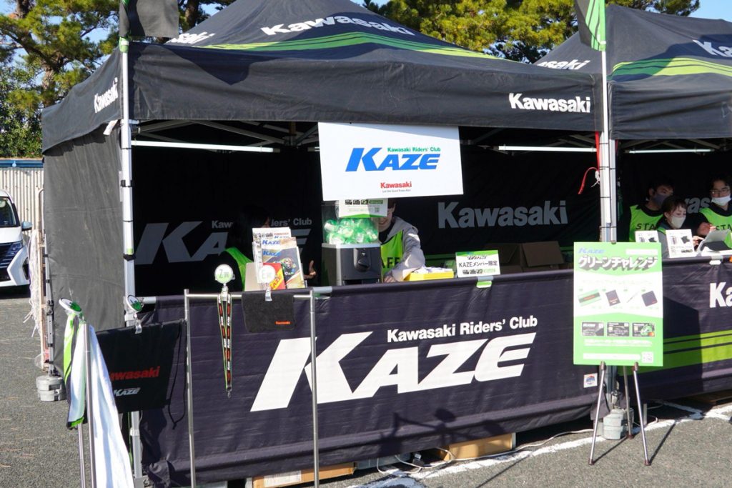 また、カワサキには、誰でも入会できるファンクラブ「KAZE」(Kawasaki Amusing Zone for Everybodyの略称)があります。会場では、KAZEメンバー向けの「グリーンチャレンジ」グッズの抽選会も行われていました。