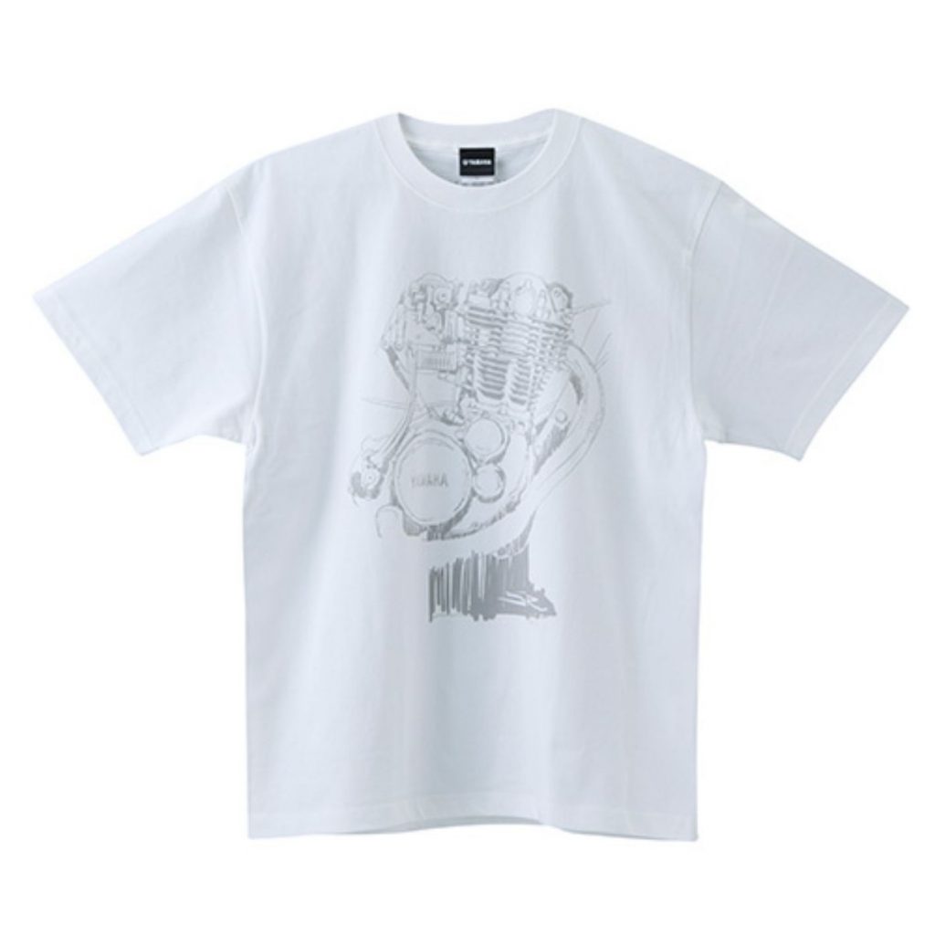 名車「SR400」の普遍的な空冷単気筒エンジンをモチーフにした、ヤマハ公式のアパレルアイテム。派手すぎないグラフィックは、バイクに乗るときはもちろん、街着としてもスタイリッシュに着こなせる洗練されたデザインのTシャツです。