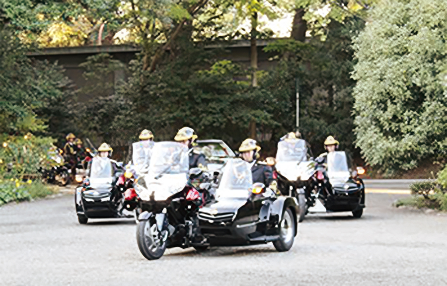 皇族や国賓の護衛、パレードなどで使用されるのがサイドカー仕様のバイクです。ホンダ「ゴールドウイング」がベース車両として採用されています。