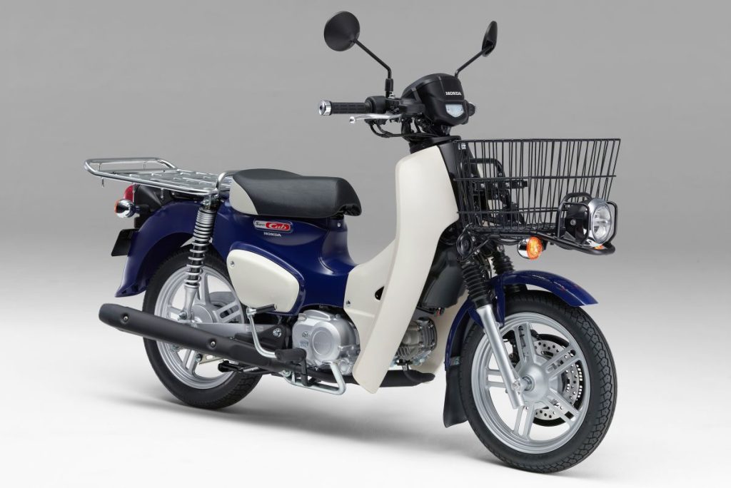 MDの工夫:郵政カブ(MD)は、重積載に耐える強化サスペンションや、取り回しを良くする小径ホイールなどが採用されていました。