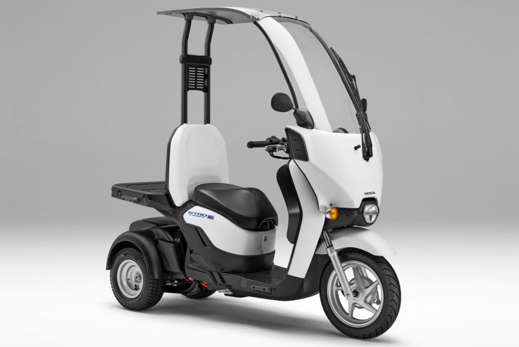 ホンダ「ジャイロキャノピー e:」などがよく使われます。三輪による停車時の安定性と、全天候に対応しやすいルーフ(屋根)装備が強みです。近年では、電動化も進んでいます。