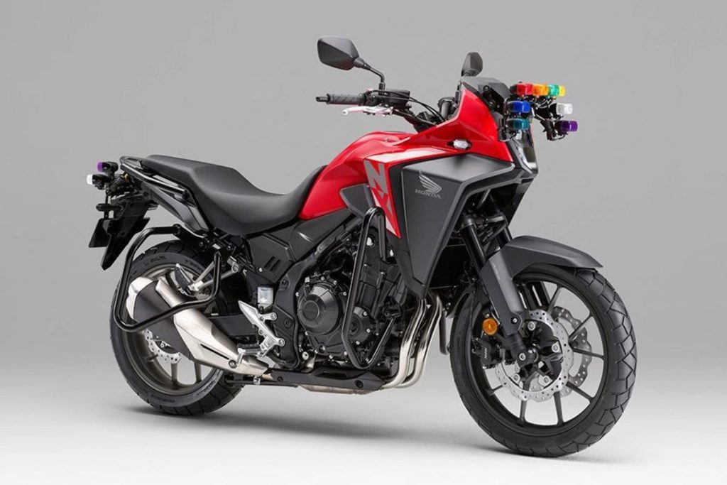多くのライダーの「原点」とも言えるバイクです。長らく4気筒のホンダ「CB400SF-K」が使われてきましたが、最新は「NX400L」などの2気筒が主流。転倒時の保護バンパーや、指導員用の表示ランプを備えた教習専用仕様です。